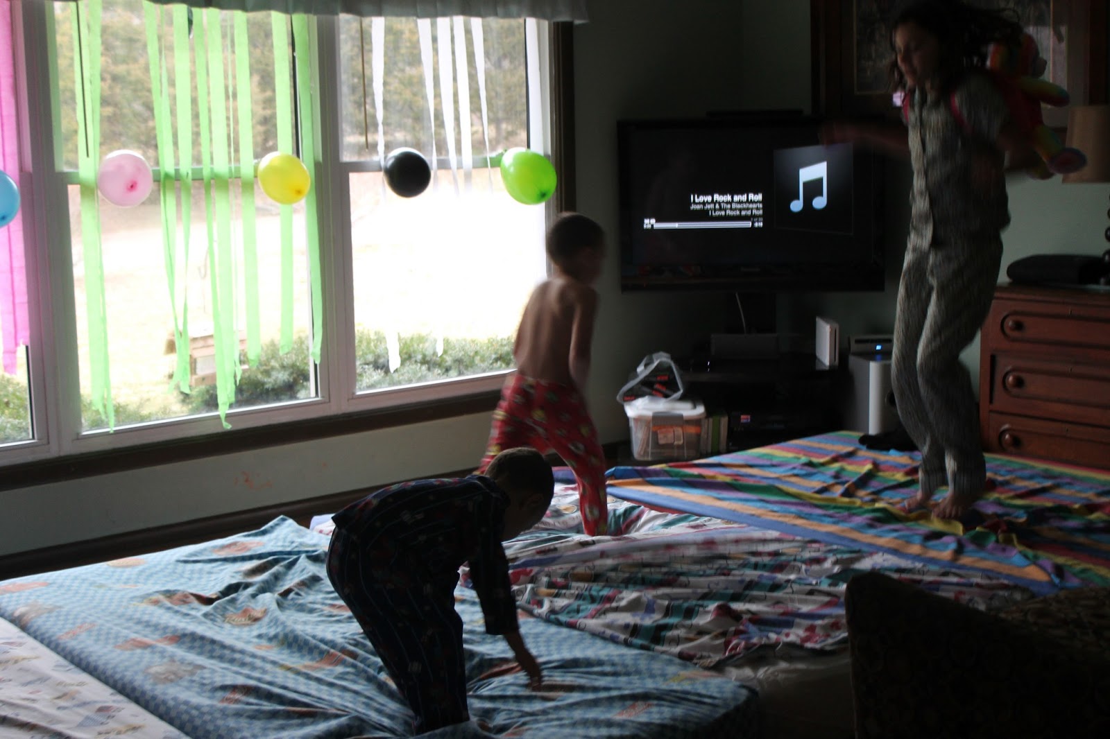 And finally,the sleepout.We put mattresses in the living room and all six of them slept out there. Of course, we danced first.(Note the song- Aggie's favorite)