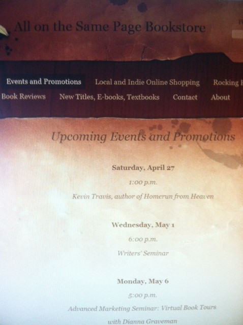 My first official book-signing event will be held on Saturday at the awesome All On The Same Page Bookstore!! Thank you, Robin and Dennis!!