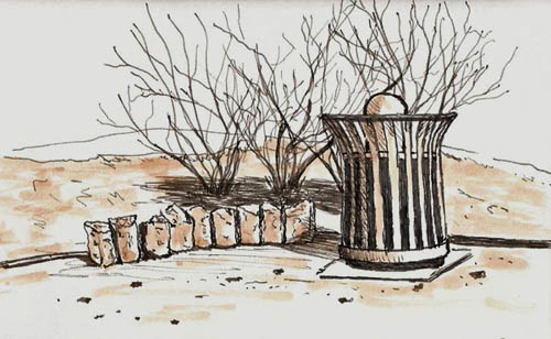 My concern was that the pen would dry/plug up so I waited to write this until I’d had the Lex Gray in the pen for a week or so. While walking through a local park, I made this little sketch of one of my favorite subjects, a park trashcan. Done in a Stillman & Birn Alpha (4×6),I was impressed by how the pen performed.