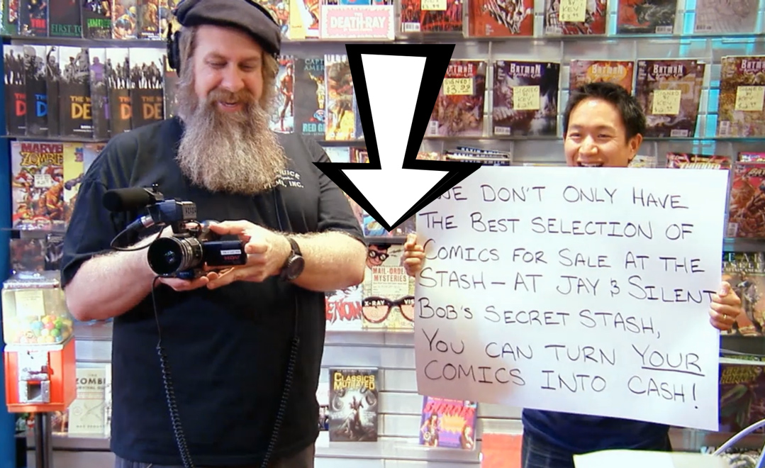 It's pointing to a Mail-Order Mysteries cameo on AMC's Comic Book Men, Season 1, episode 3. (My friend Kevin (not Smith) sent me this screen grab. I saw the episode and completely missed it!) I'm honored that it's among Kevin Smith's Secret Stash, and we didn't even have to pay for product placement. If you ever visit their store please buy the book while doing something extremely entertaining.