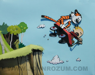 I have two 3-D cut paper pieces in the show featuring "Calvin and Hobbes," which you can see below.