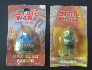Among the various Return of the Jedi stationery and school supplies were a selection of pencils and figural erasers.