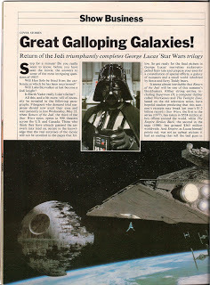 ROTJ, it's most important tidbits did not involve the new movie, but hints about what to expect in the eventual prequel trilogy and sequel trilogy. Reading through this article again now, there isn't much you can glean from it this far afterwards, but that same paragraph pertaining to the six movies beyond the original trilogy remains intriguing now that the prequels have come and gone, and the sequels are apparently going to happen with the original cast now at the actual ages that Lucas envisioned their characters being.