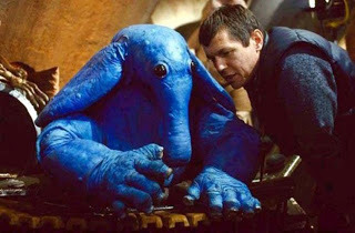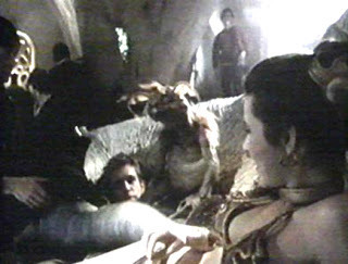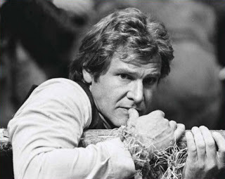 Harrison Ford contemplates becoming a Han-burger at the hands of the ewoks.