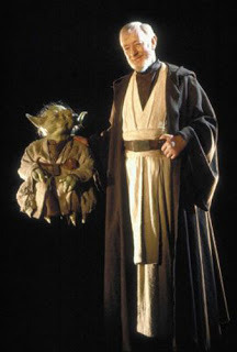 Yoda and Alec Guiness about to be filmed as ghosts.