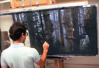 Christopher Evans painting a matte painting of the ewok village.