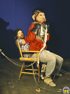 Puppeteer, Tim Rose rehearses with the Admiral Ackbar puppet.
