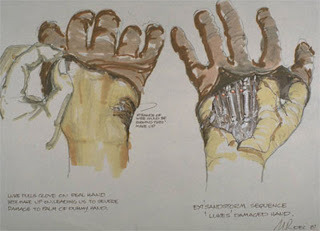 Norman Reynold's sketches of Luke's damaged hand for the deleted sandstorm sequence.