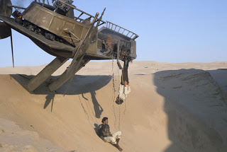 Jabba's sail barge and the Sarlacc pit on location in Yuma, AZ.