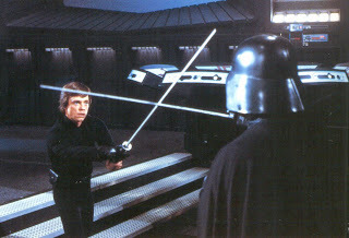 Luke and Darth Vader before animated lightsaber blades are added.