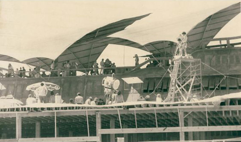 Jabba's sail barge under construction.
