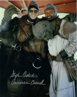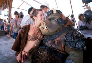 Carrie Fisher cuddling with one of the Gamorrean guards.