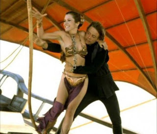 Carrie Fisher and Mark Hamill on Jabba's Sail Barge.