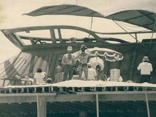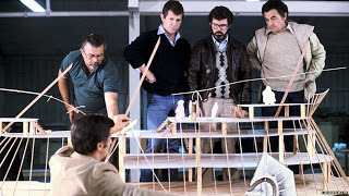 Richard Marquand, George Lucas, and Norman Reynolds planning out the scenes aboard Jabba's Sail Barge.
