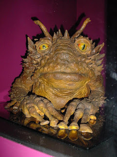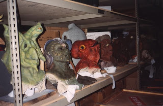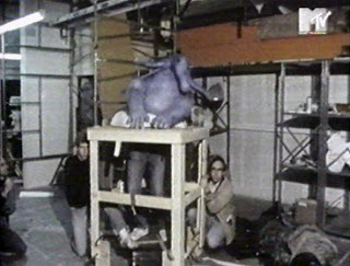 Filming the Sy Snootles puppet on the set of Jabba's throne room.