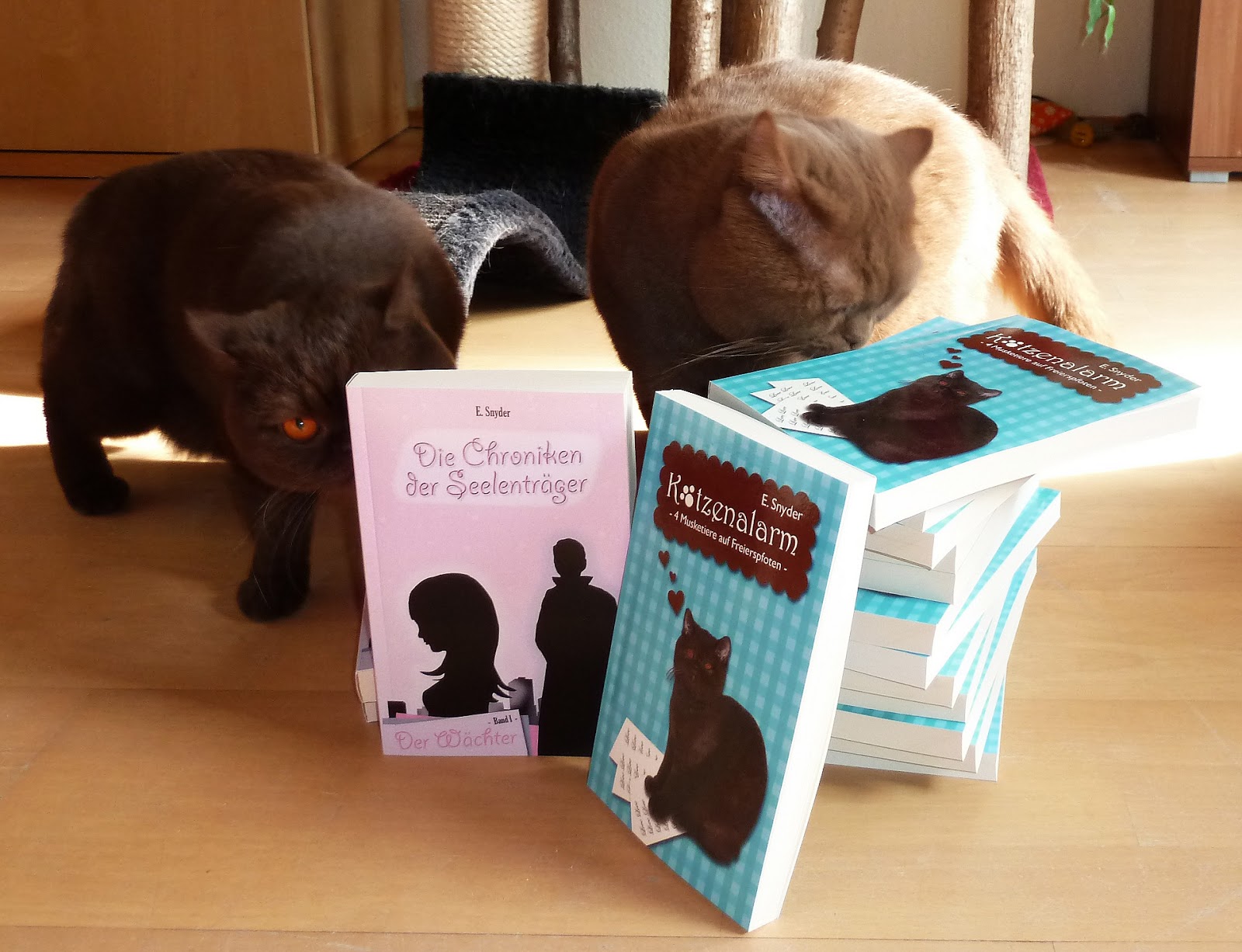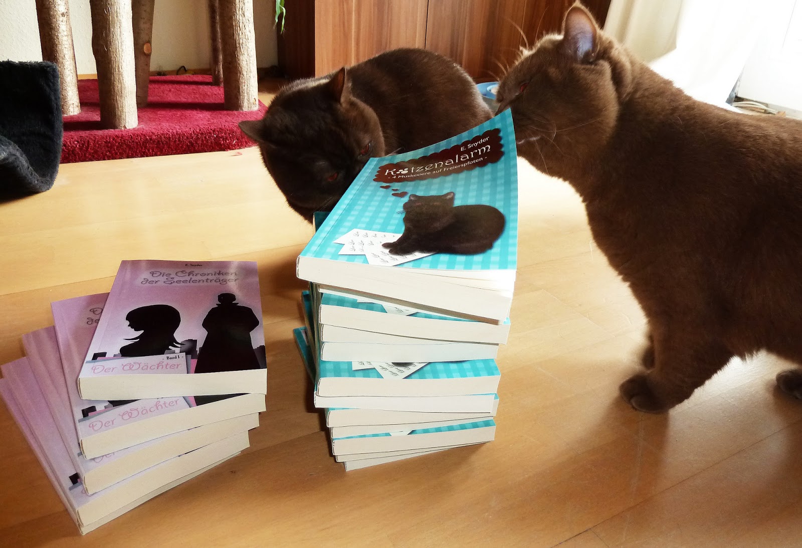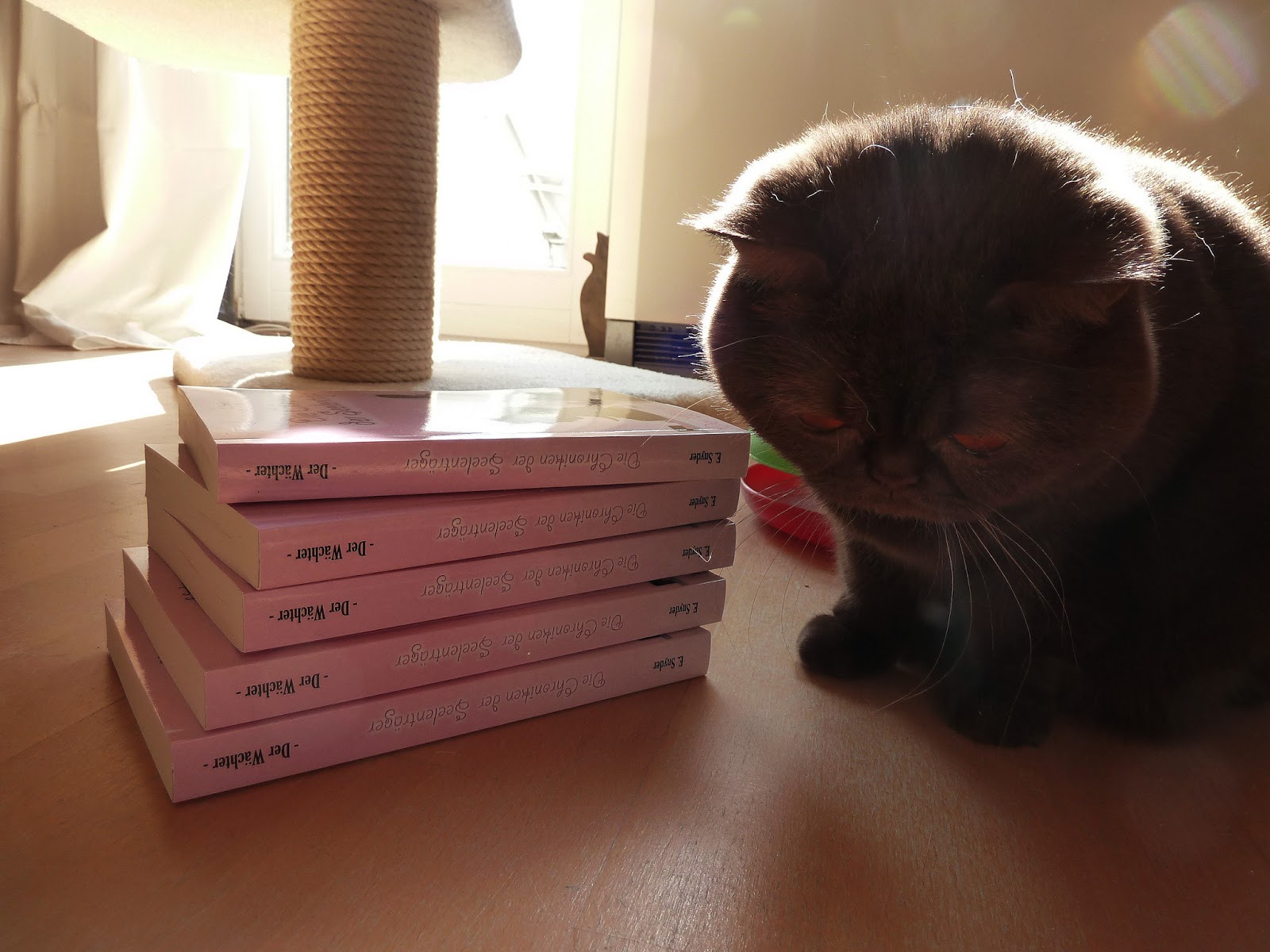Pauline war beleidigt. Auch sie hatte insgeheim gehofft, auf dem Cover abgebildet zu sein. Wie Mohrle hatte sie die Cover-Preview auf dem Laptop für eine Finte gehalten. Nur hatte sie geglaubt, dass sie und nicht Mohrle letztendlich die Überraschung ihres Lebens erleben würde. Als das Paket ankam, hat sie es ordentlich beschnuppert und bereits festgestellt, dass da was nicht stimmen kann. Drum hat sie sich beim weiteren Fotoshooting damit hervorgetan stehts die Linse zu verdecken. Mit den Büchern wollte sie aber nicht gesehen werden. Sie wird sich schon wieder einkriegen. Da bin ich sicher!