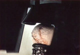 When The Empire Strikes Back came out, we received our first true hint to the nature of Vader's bare noggin through a very short clip of his helmet being lowered into place over the exposed back of his burn scarred head.