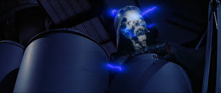 With Return of the Jedi, we'd finally get out look beneath the helmet. Before that moment, we'd get a few more hints at the cyborg anatomy of Darth Vader. First Luke chops of Vader's hand with his lightsaber revealing a writs full of severed, smoldering wires. Later as the Emperor's force energy courses over Vader, it illuminates him like an x-ray, revealing not just his skull, but bits of machinery in his neck and arm, suggesting he still had some serious injuries to come after those that would be revealed in Revenge of the Sith.