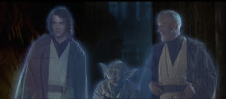 When Return of the Jedi was released on DVD as the prequel movies were finished, we had to suffer with poor Sebastian Shaw as Anakin's ghost being replaced by much younger Hayden Christensen as Anakin's ghost. Why don't Yoda and Ob-Wan get to appear in their youthful forms. For that matter, where are the ghosts of all the other jedis? At least the scenes with Luke and his helmetless father weren't reshot with Hayden Christensen -- so far.