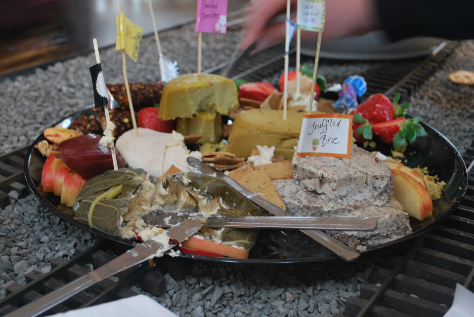 My friend Joel (whom I stayed with while I was in Portland) didn't attend the conference, but he did join me at the gala. Joel ordered beer, and I made a b-line for the samples of Miyoko's vegan cheeses. Miyoko Skinner wrote Artsian Vegan Cheese, and she's pretty much the world's greatest expert on vegan cheese. And she made these herself!! OMG! These were amazing! I wanted to eat this entire tray, but I had to be nice and share.
