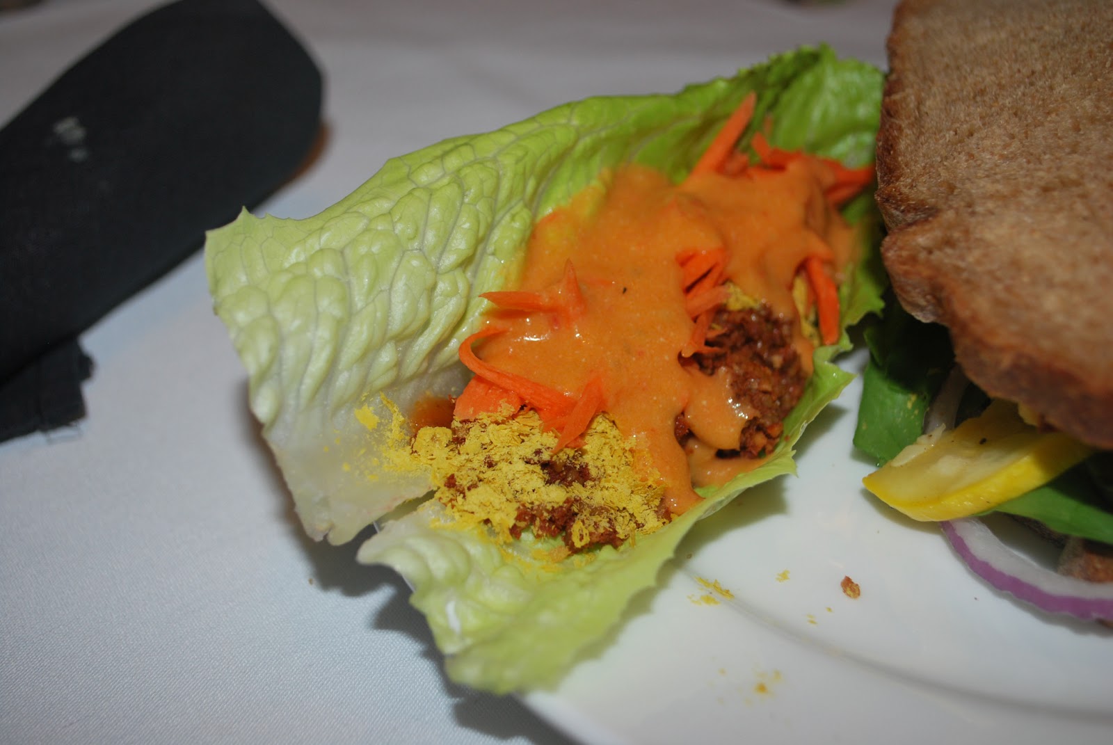 I also built a sort of Raw Taco using raw walnut meat, a romaine leaf, and some carrots. But then I made it un-raw by covering it in Nacheez spread.