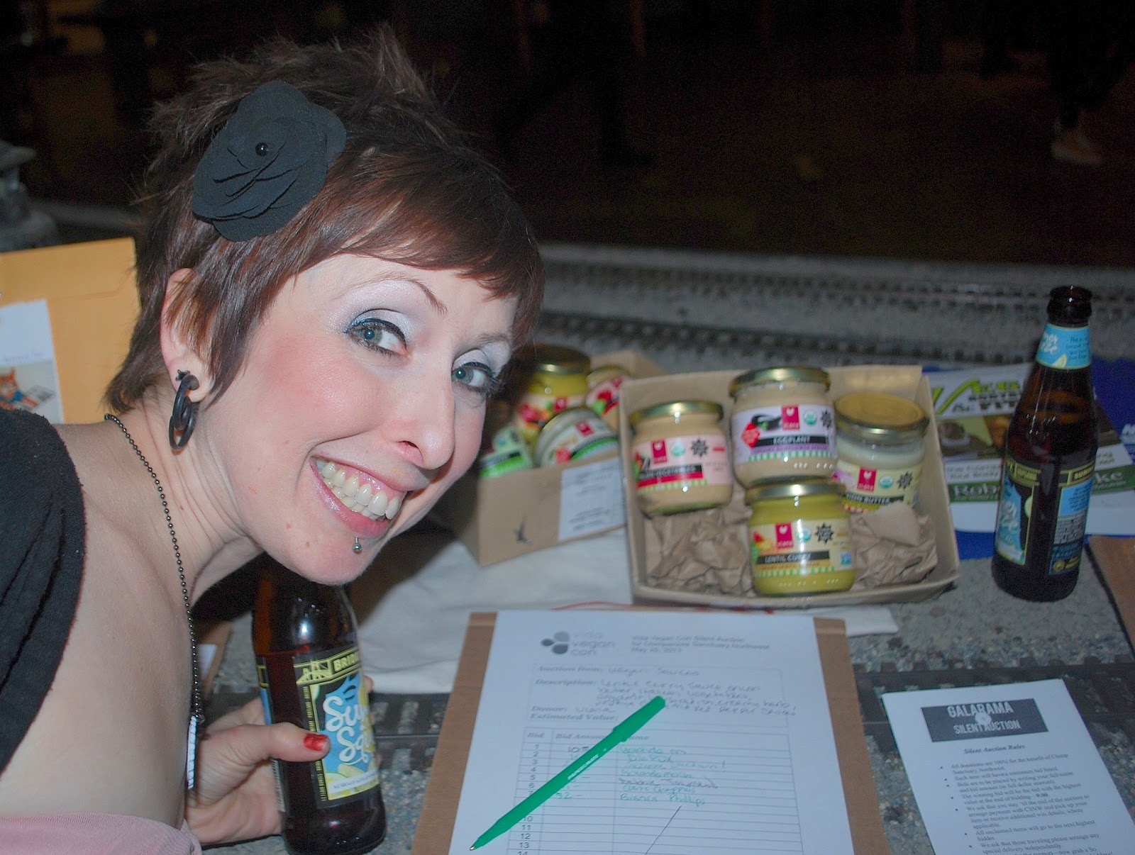 There were more workshops and panels after the Vegan Battle Royale. We had a short break between the conference and the Galarama, a fancy vegan gala to benefit the Chimp Sanctuary NW. It was held in a really rad venue with a model train track that spanned the inside and part of the outside of the building.
