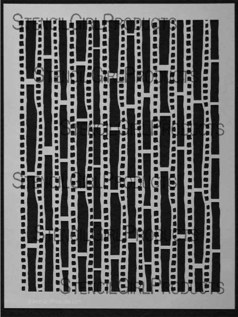Jessica started this back in December 2012 and since that time, posts have popped up all over the Internet showcasing what can be done with her stencil line. Today, I get to play with Dots and Dashes - or as I like to call it: mixed media morse code!