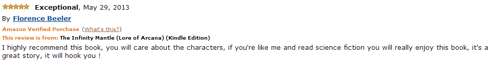 Hello! Lore of Arcana's first 2 books both received an 'exceptional' from a reader who bought and read AND reviewed both! Thank you to Florence!