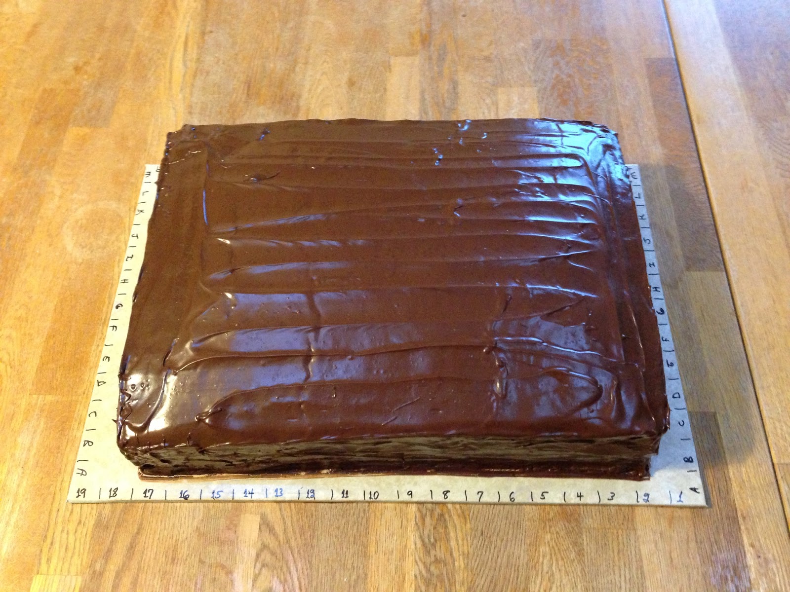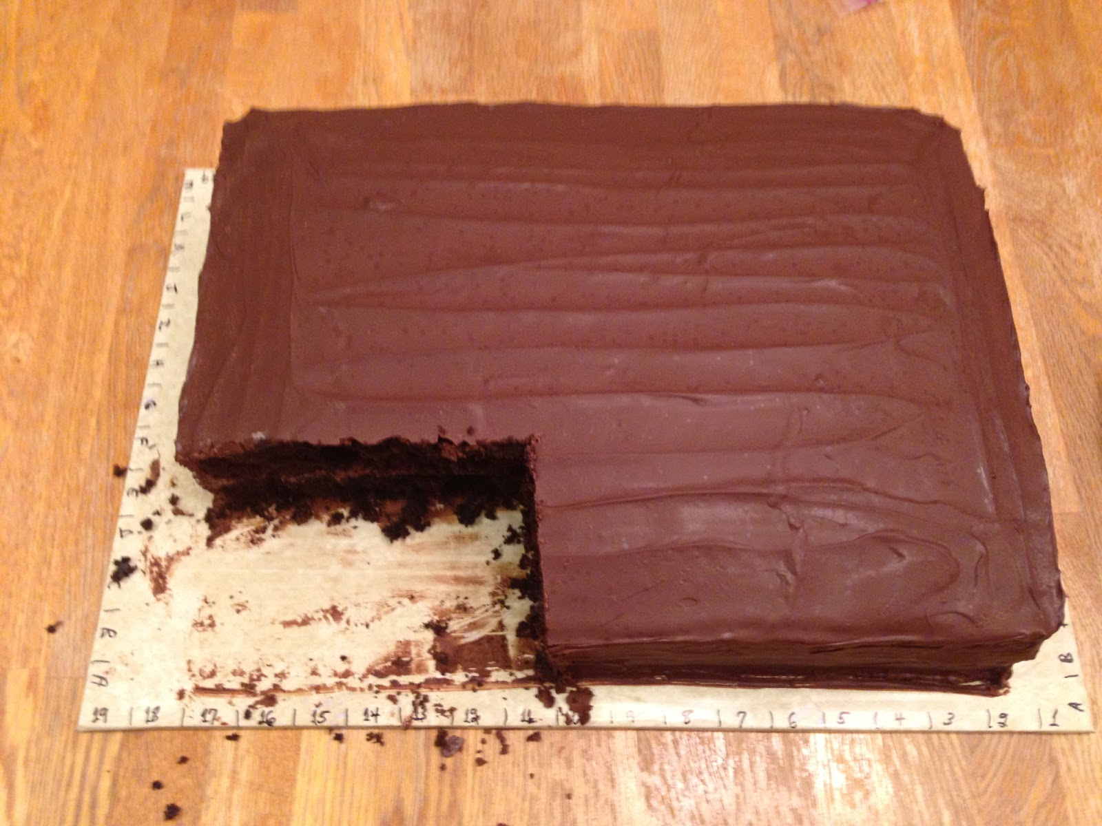 Later in the evening, we all enjoyed one of Bob's desserts. Traditionally, we have selected as that dessert his death-by-chocolate cake, which we call simply the Bobcake. This beast is dark, huge, delicious, and rich. It's so big, in fact, that our large crowd typically needs more than a week to consume it. This year, to help us chart progress, we put grid marks on the tray that supports the cake.