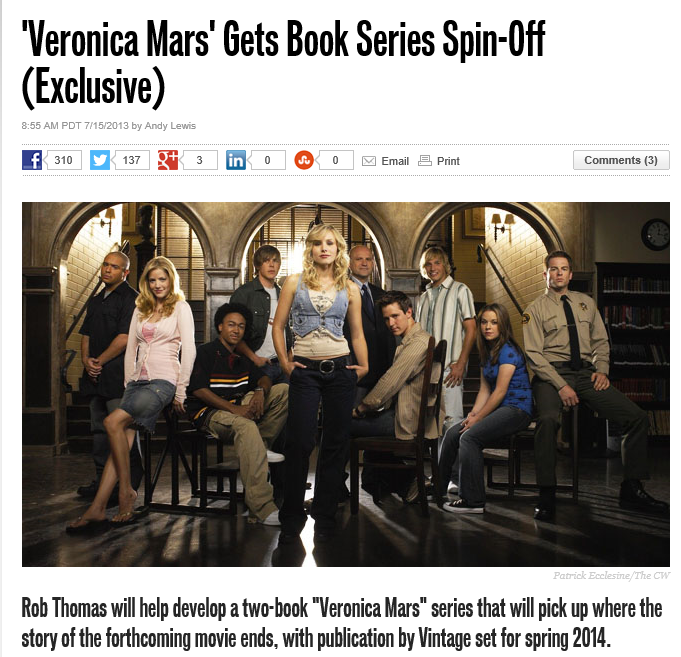 Veronica Mars is a modern Nancy Drew filled with wit, romance, mystery and the smartest plotlines I've ever seen on a television show. The characters are believable, the suspense is enticing, and Veronica is a female protagonist that can inspire young girls to fight for what is right, that it's okay to be different and independent and - above all - to stand up for yourself. I was so excited when they announced a Veronica Mars movie, because it will forever remind me of writing mystery stories as a young teenager and being a badass.