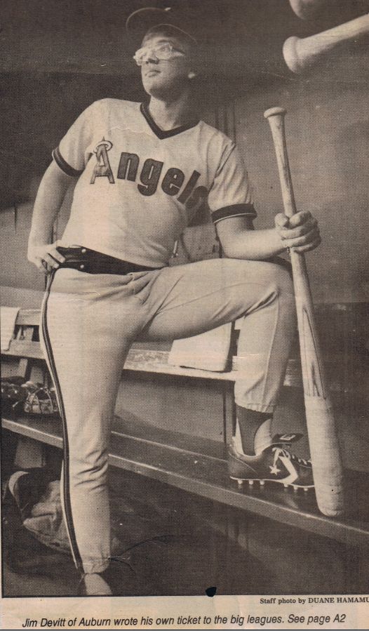 How about this look ... styling the California Angels uniform and posing for the camera on opening night? This one is a little later. Here I'm traveling on the road with the Mariners. We hit Anaheim