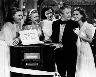 I wasn’t planning on writing a review of Four Daughters (1938), but after watching the DVD (I had seen the movie on VHS a long time ago), I changed my mind. It’s simply too interesting to not write about it, even if in the brief format of this blog. The star that most will recognize is Claude Rains, who plays Adam Lemp, a musician raising four very musical daughters in a small town somewhere in New York. Also present is Aunt Etta in place of the girls’ mother, who is unexplainably missing. As the movie opens, a beautiful recital is going on at home, with father directing and playing the flute, looking like he just stepped out of Beethoven’s Vienna. Father doesn’t like “modern” music like jazz, and his daughters seem to (more or less) agree with this, but soon a dissonant note is heard over the classical kind, and it turns out to be the squeaking of the front gate—a wonderful motif, both aural and visual for the change that is soon to come to the house of the four daughters, where music and men will be mixing in unexpected ways. This change is most represented by the two composers who enter the family’s life, both of them lovers of that modern music that Adam so dislikes. The director, Michael Curtiz (remember “Casablanca”? he directed that too) used the windows of the house as a way to show the daughters finding new men in their lives, coming through that gate in particular. But lest you think this is another purely sentimental old movie about romance, be warned: it’s not all sweetness and light. Before the film is over, there will be some dark notes struck as well, ones that I found curious given the Production Code then in force. Watch it and decide for yourself.