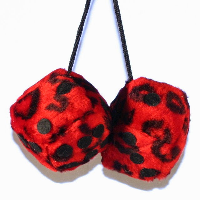 Waiting for us in the parking lot. And he is. Sitting in the driver’s seat of his own car. I didn’t know he was old enough to drive. He gets out and gallantly opens the passenger door for me. Great! I get to ride shotgun which wouldn’t be bad normally, but the car is festooned with huge fury dice and pompoms, and upholstered in plush red velour.