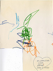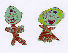 My earliest drawings are just scribbles and shapes, but they’re all sort of rounded, featuring a lot of bubble-headed figures.
