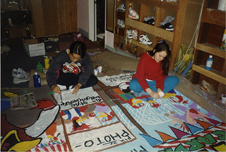 Creating a giant dance poster for school! (Fun facts: In Smile, you see my character creating posters much like this one! And the person painting with me in this photo is my amazing friend Jake, who inspired the character of Jesse in my book Drama!)