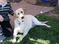 While I'm assembling school lunches and my three kids are making their breakfasts, I have an 80-pound yellow lab dogging my steps. Pun intended...