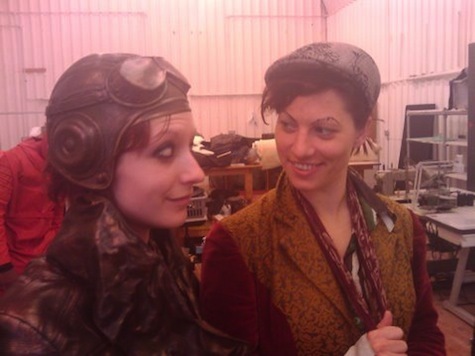 The photos above are of Amanda and her friend -- and then, pretty soon, our friend -- Becca Rosenthal. (It was Becca who told Amanda that she ought to marry me, the night before I proposed and we got engaged.) Becca was smart and funny, an excellent writer, and had amazing taste in music and art. She acted in my film STATUESQUE (that's the costume fitting she's getting, in the bottom photo).