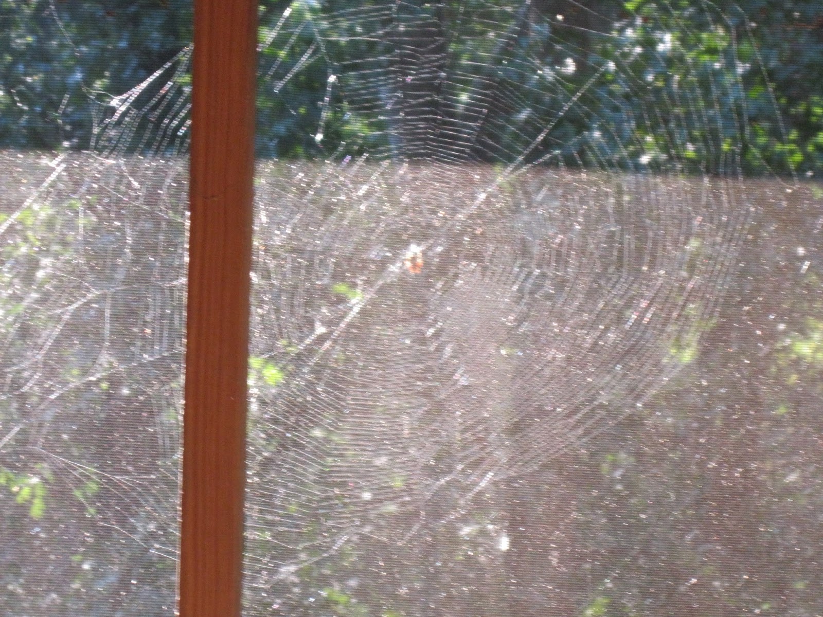 Is that not one bad-ass spider web? I took it from the screened-in porch. Luckily, Ms. Spider and her gourmet kitchen were on the other side.