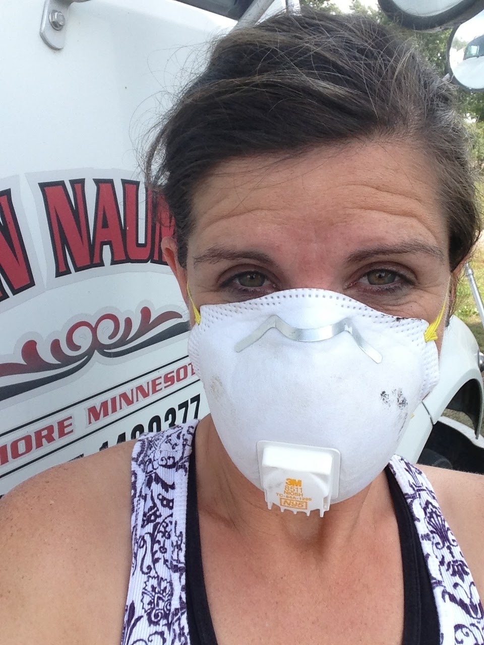 First I had to put on this annoying mask to keep out harmful corn dust that can do a real number on your lungs if you don't (this is coming from the same person who has panic attacks when wearing a snorkeling mask). It basically feels like sticking a heavy, damp blanket on your face. Not only does it make breathing normally a difficult task, but it produces buckets of sweat. I kept thinking if I didn't get to breathe in fresh air soon, I was going to pass out, or drown in my own fluids. I even wondered if my will is up to date.
