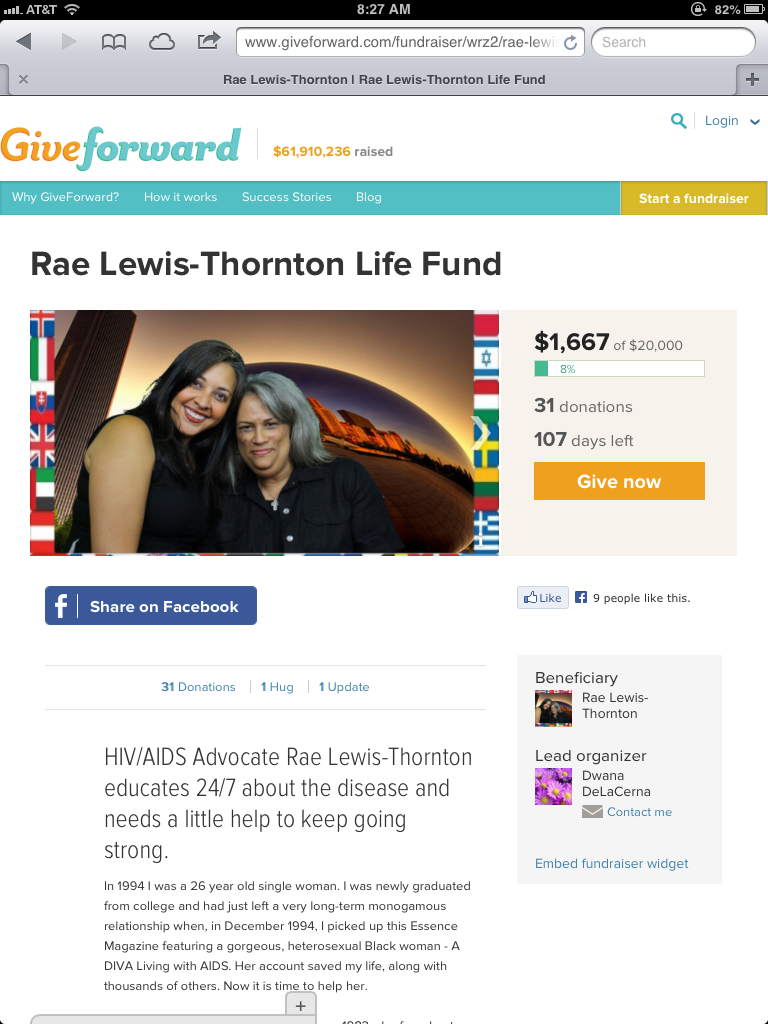Certainly this GiveFoward Fund for me is a ram in the bush and I thank God for Dwana for starting it and for every person who has donated in the last week. It's blowing my mind the comments alone. Its good to know the impact that I have had on people. Its like the GiveForward Fund is a chance to have my roses while Im still yet alive and with depression setting in thick, the comments are giving me new life.