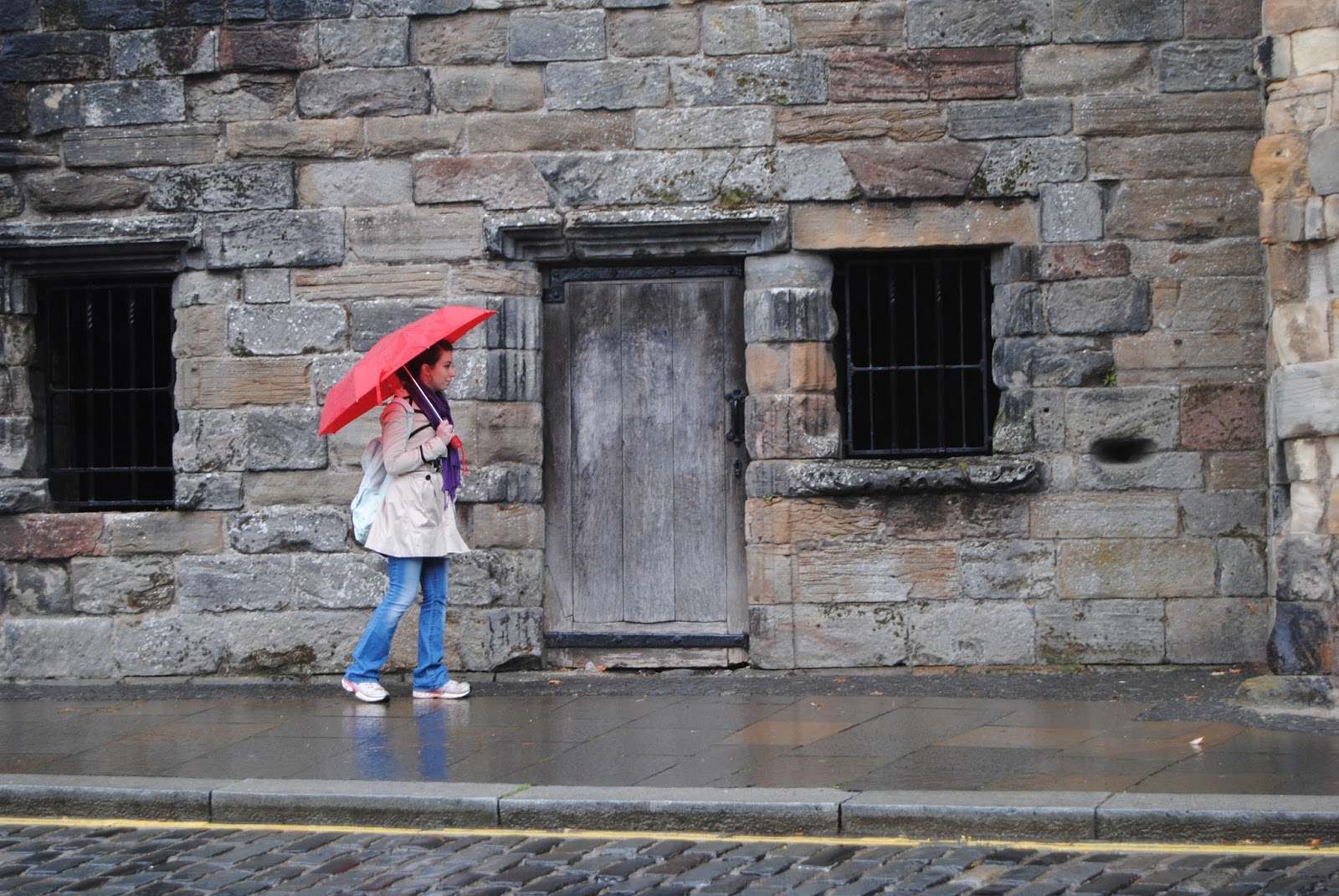 The Gothic-style building in the background is the front bank of the Church of the Holy Rude.