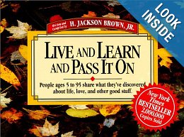 Link to preview.I have a book on my desk written and compiled by H. Jackson Brown, Jr., entitled Live and Learn and Pass It On. The subtitle reads: “People ages 5 to 95 share what they’ve discovered about life, love, and other good stuff.” During the introduction, Brown discusses how on his fifty-first birthday he thought it would be interesting to jot down some of the things he had learned in a half a century of living. He wrote, “I’ve learned that…” twenty times on the left-hand side of a piece of paper. He then completed the twenty sentences. He enjoyed the activity enough to add it to his Sunday routine. One thing led to another, which led to a book filled with the wisdom of people just beginning to learn and those amazed to be still learning nearly one hundred years later.