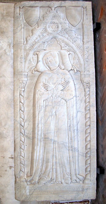 Everywhere you look there are women clutching books. This is a marble tomb lid from 1384.