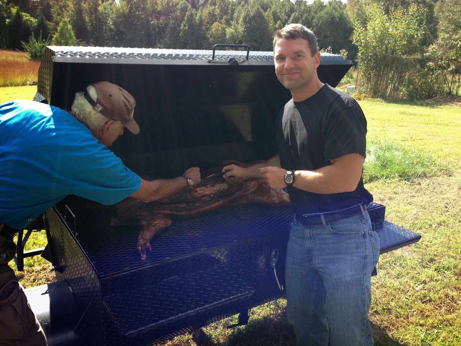 As the expression on Kyle's face suggests, he was a happy camper, as were the rest of us who had early tastes. Damn, that meat was good.
