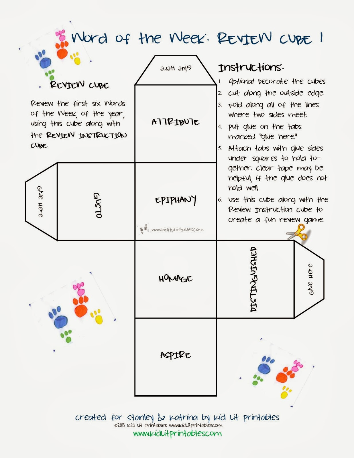EPIPHANY vocabulary word cubePrintable EPIPHANY examples to illustrateWord of the Week Mini Poster courtesy of the Muhlenberg Elementary CenterWord of the Week blank page to fill out