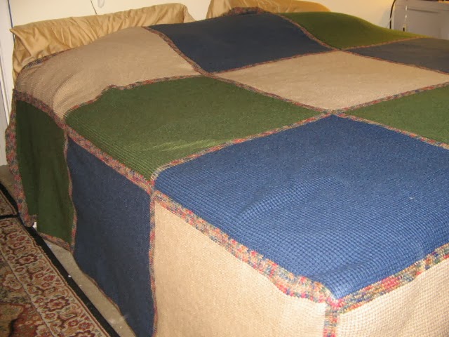 But before we move on to that, I'll just point out the hunk is particularly nifty when it comes to crocheting--witness his latest production--a lovely fitted king-sized cover for our bed! I wish I could crochet with such even stitches...