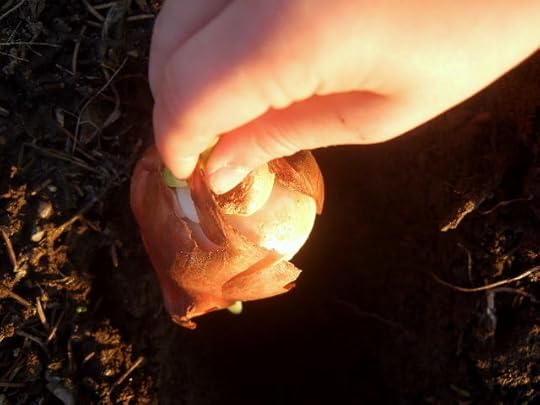 “Gotta little spade I can borrow?” I grin, hold out a hand full of bulbs.