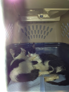 I did not want to adopt these guys. I already have a house full of cats (in addition to the usual crew, I'm also currently taking care of two of my older daughter's cats while she's in San Antonio). And CH cats have elimination issues. Except that unlike our other cats with minor elimination issues, theirs are pretty extreme. And they can't live on the porch because they don't have the coordination to walk on those widely spaced boards. But they were barely surviving by hiding amongst my daughter's flower pots and eating the food she put out for them, and with a hurricane barreling down on us....