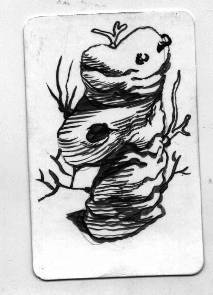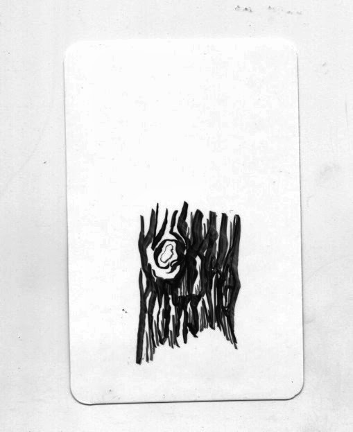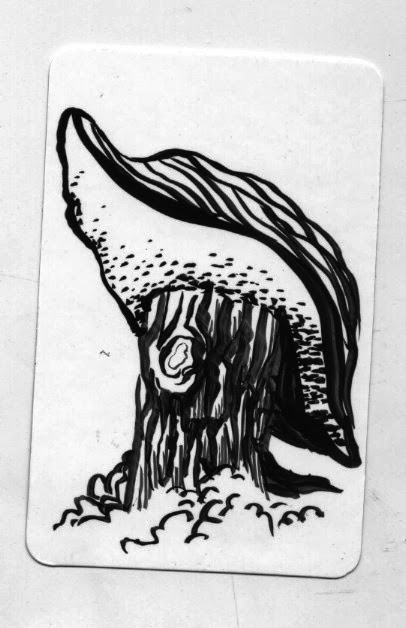 Next, on another blank card, we drew some of the brilliant logs they had for seats in the workshop space (drew the one below from memory this morning but you can see the cool logs in the photo). We left the top and bottom of the logs unresolved. When that was done we swapped the card.