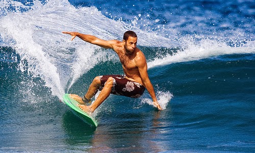 Not only does he live on the beautiful island of Oahu, but he's a surfer—a really, really good one. He was a pro until a bad accident at age 17 that caused him to lose teeth, have 150 stitches in his forehead. I once saw him say in an interview that he only tours a few months at a time because he gets uncomfortable being too far away from the ocean. He hangs out with Kelly Slater. He looks amazing in a pair of swim trunks. Need I say more?